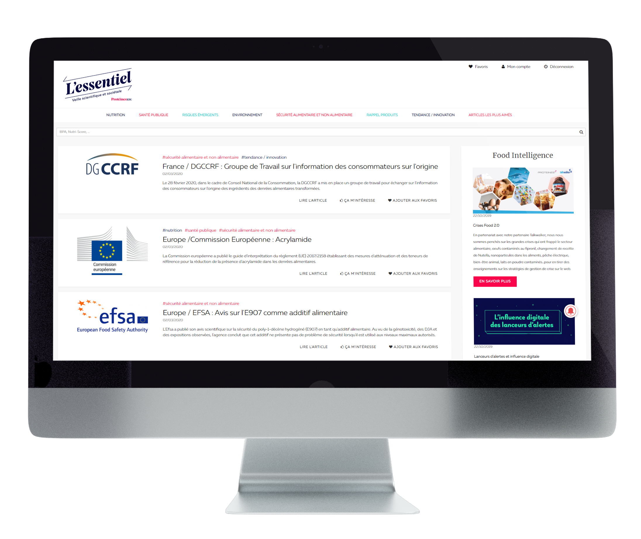 Parmi plus de 200 sources, nos équipes scientifiques sélectionnent et analysent chaque jour, pour vous, les actualités à ne pas rater qui touchent de près vos enjeux ou vos activités dans les secteurs alimentaires et non alimentaires : risques émergents, santé publique, sécurité sanitaire, environnement, nutrition, tendances/innovation...
